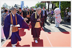 洞泉寺なむちゃんも猊下をお出迎え