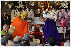 法要終了後、ご門主様より洞泉寺方丈様に本山寄付への感謝状、記念品を賜りました。