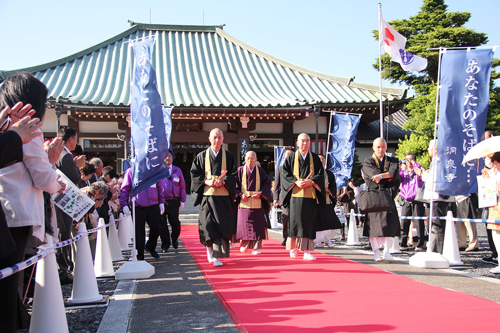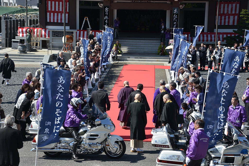 想いを伝えるお寺 洞泉寺 にご来訪されまして、参詣者の方々に寄り添っていただきました。全国より多数の参詣者、僧侶、報道各社がお集まりになられました。