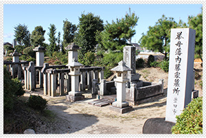 内藤家墓所は豊田市の史跡に指定されており、第7代藩主 文成(ふみしげ) をはじめ藩主の子と兄弟、生母の墓碑7基が一列に並んでいます。