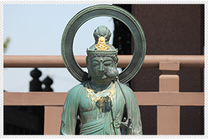 お寺の門を山門と呼び、仏様とのご縁を求める人を迎える門です。山門の頭上にはお堂があり、仏様が祀ってあります。