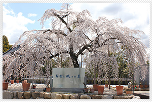 樹齢推定200年前後の豊田市内でも有数のしだれざくらです。ソメイヨシノより少し早い3月中旬~下旬頃に見頃を迎えます。