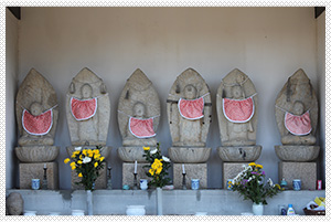 六道(ろくどう)(すべての人が生死を繰り返すといわれる六つの世界)に、それぞれのお地蔵さまがいらっしゃり、迷い苦しんでる人を救って下さいます。