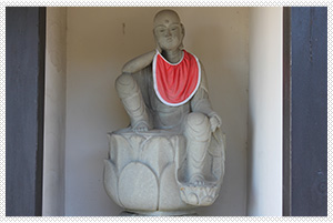 薬師堂に安置されております子守薬師様は子供の病気を治し、子供をお守りいただく仏様と云われ、抱き地蔵様は直接抱いて想いをお伝えいただき無病息災にご利益があると云われております。